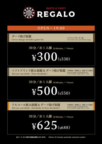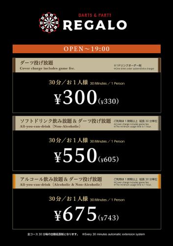 <金・祝前日>OPEN~19時までの料金になります。