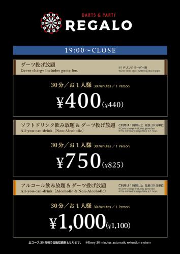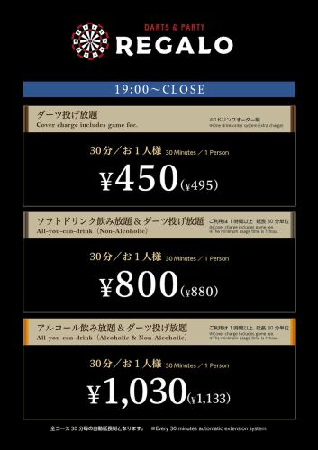 <月~木・土・日・祝>19時~CLOSEまでの料金になります。